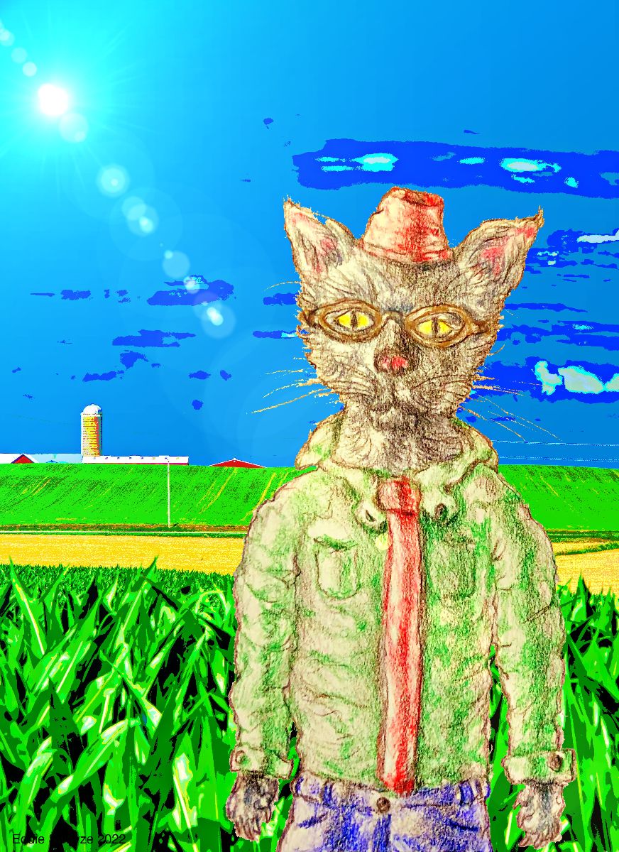 Cat on Farm | Digital Art, 8" x 11" x 0"