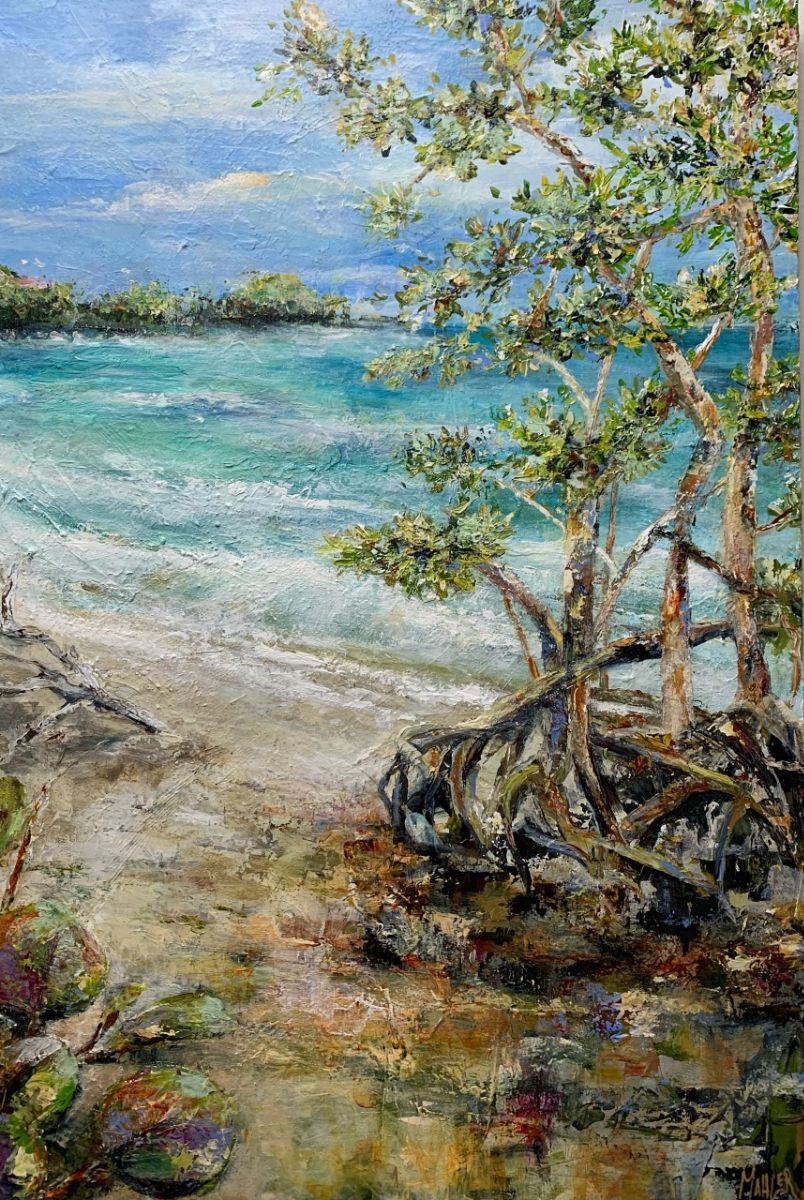 24x36 Original Mixed Media on a wrap around Canvas. This is heavily textured and rich with color. If the viewer looks around they will find a surprise within the composition hidden only to be found by those with a desire to find it.