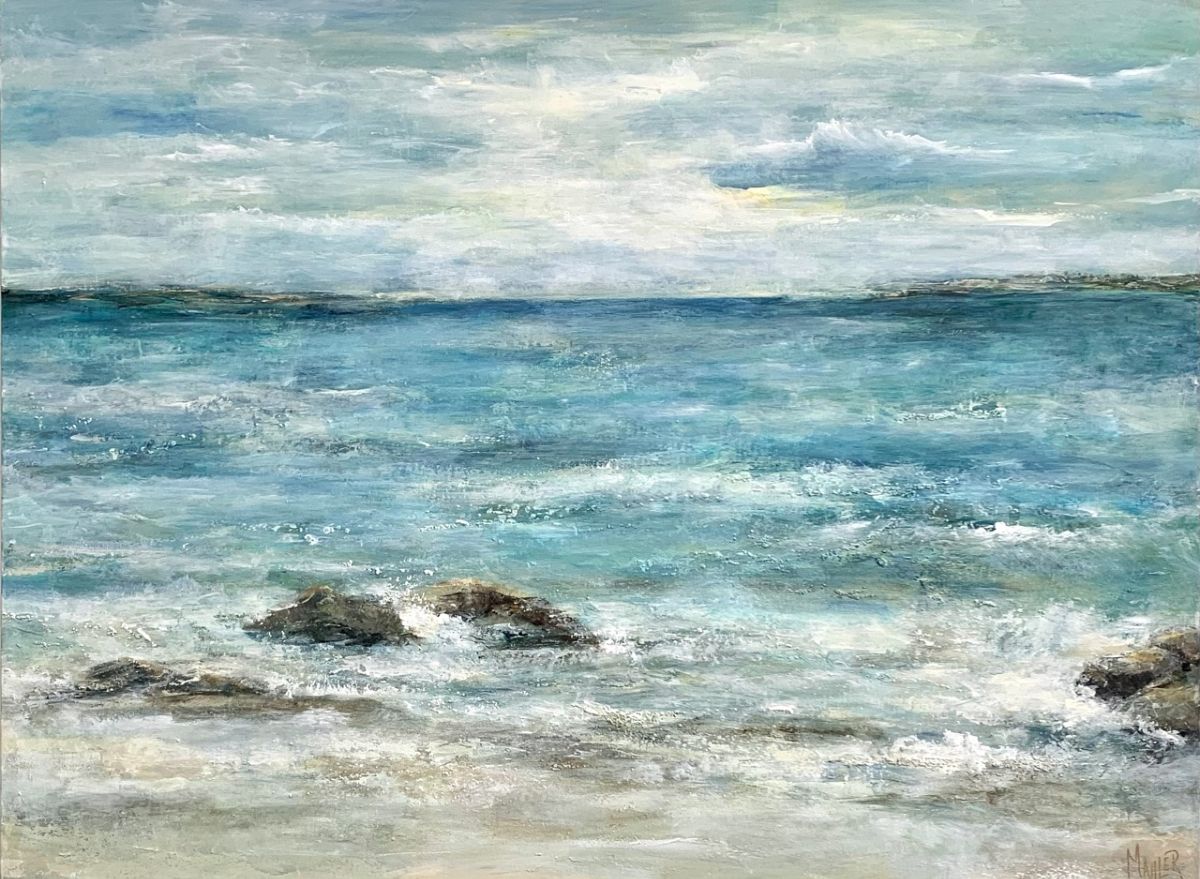 36x48 Original Mixed Media Inspired by the Gulf of Mexico waters. Highly textured Abstract painted from a memory. A beautiful feeling captured on the white Sands of SWFL.