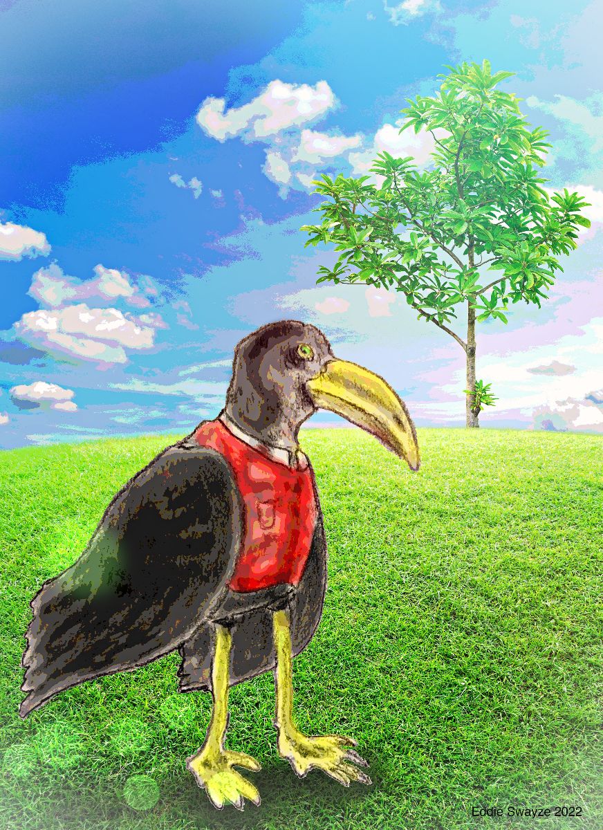 Bird on Hill | Digital Art, 8" x 11" x 0"