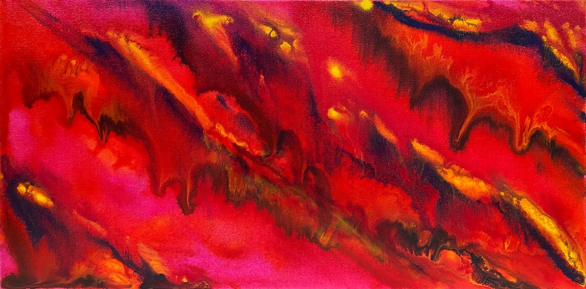 Acrylics on canvas. Deep warm tones create an intense landscape, via controlled washes of colors.