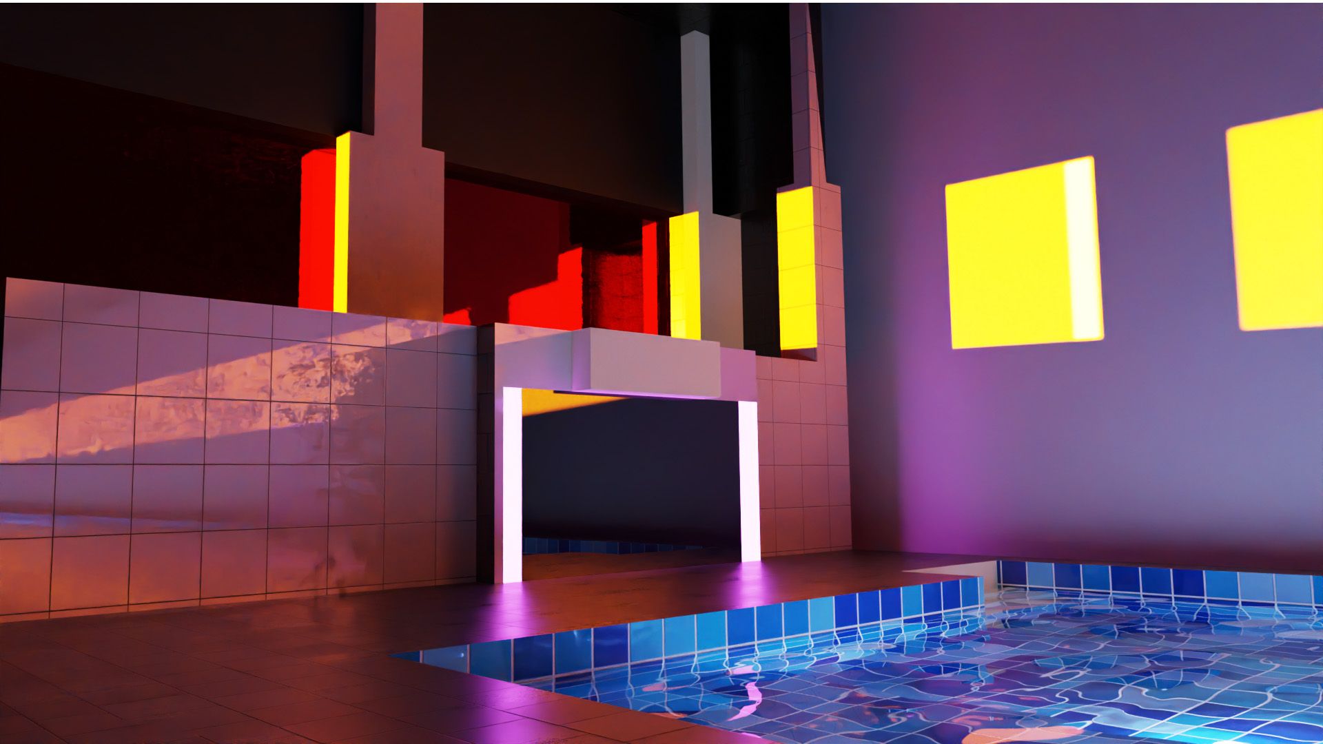 A million Lightyears away stands a Large Building that Rumbles deeply with the moving Air. You step inside, place your feet on the Cold linoleum, and, listen to the soft slapping of waves against the tiled poolside. As subsonic bass from the atmosphere engulfs Your body like a warm gel, you feel isolated but at peace.