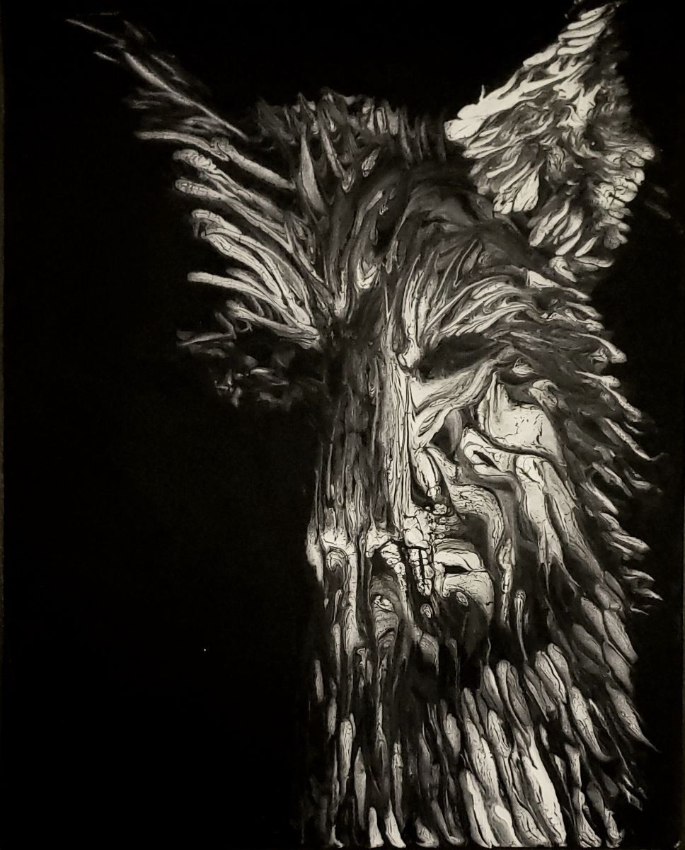 Using the swiping technique to create an animal takes my paintings to another dimension with the layers of movement going on in the background.