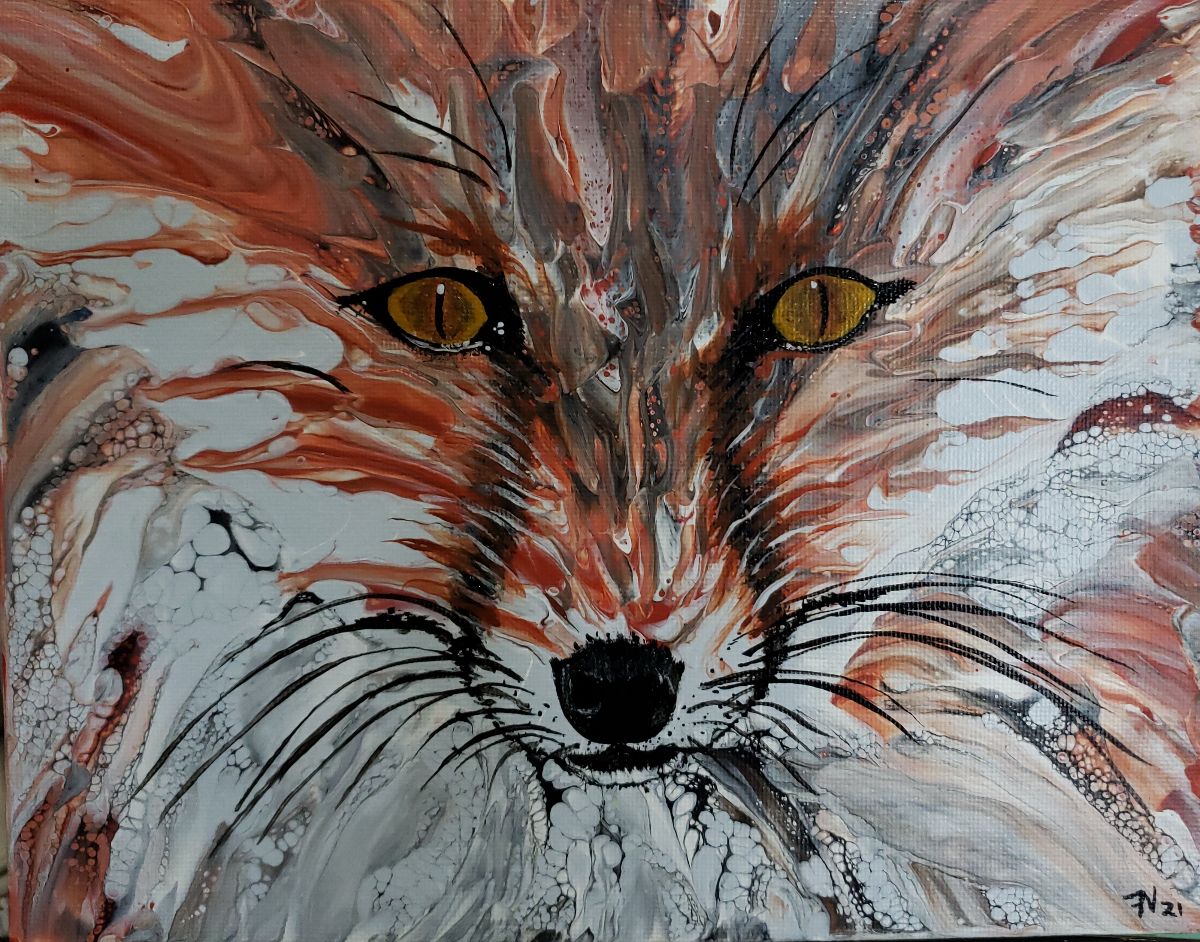 Using the swiping method I framed the body out on the canvas and then wait until its dry to add the details like the eyes, nose and whiskers.