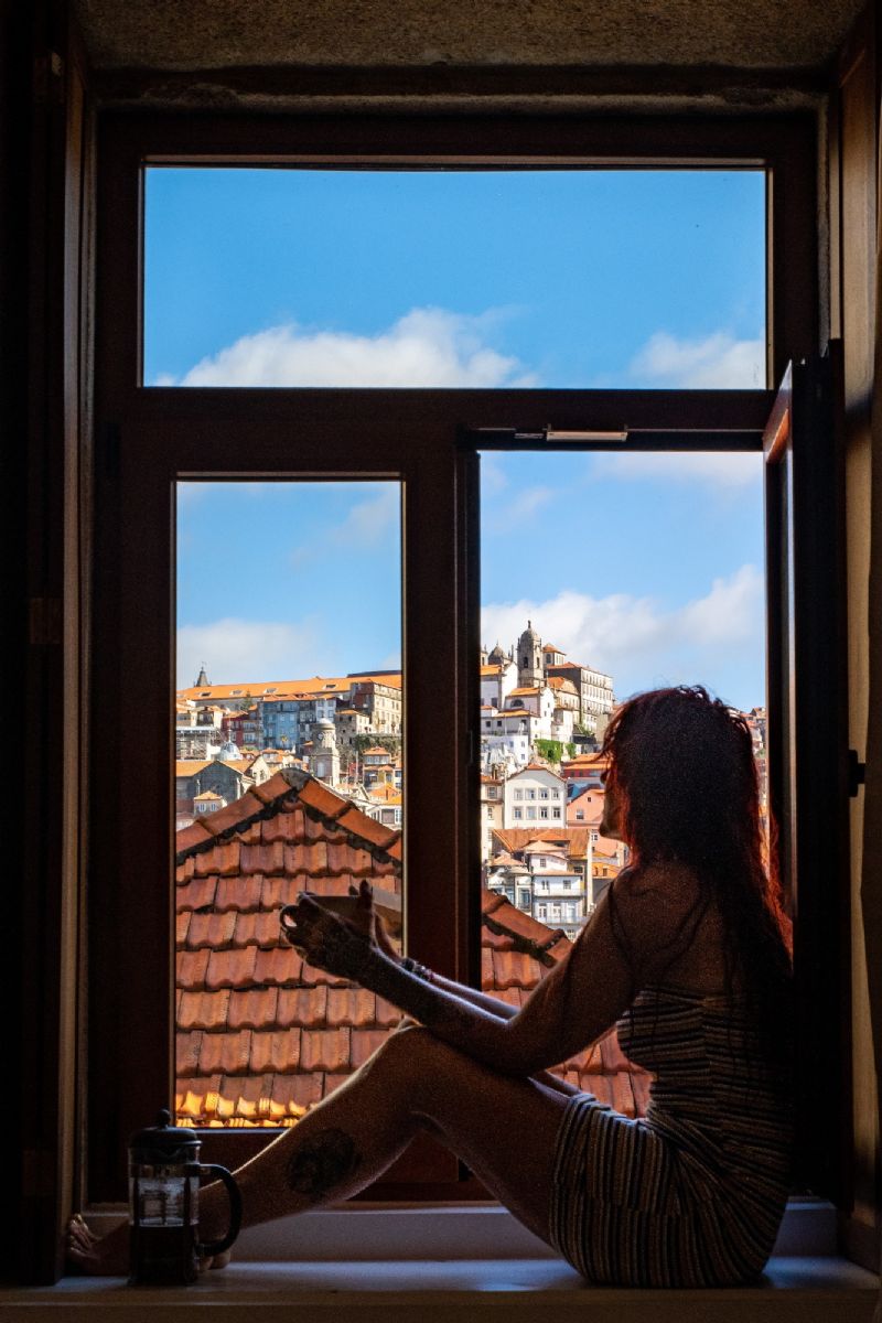 While on a 2 week road trip through Spain and Portugal, I spent a few nights in the city of Porto. My flat had this large beautiful window overlooking the river and rooftops of Porto. I couldn't help but sit in the window each morning with my coffee reflecting on the beauty of this world, and my life so I propped my camera on the kitchen counter and took a few selfies. I wanted to capture this moment to share - and hopefully inspire - others to find those moments for themselves. Travel and photography are truly my happy place.