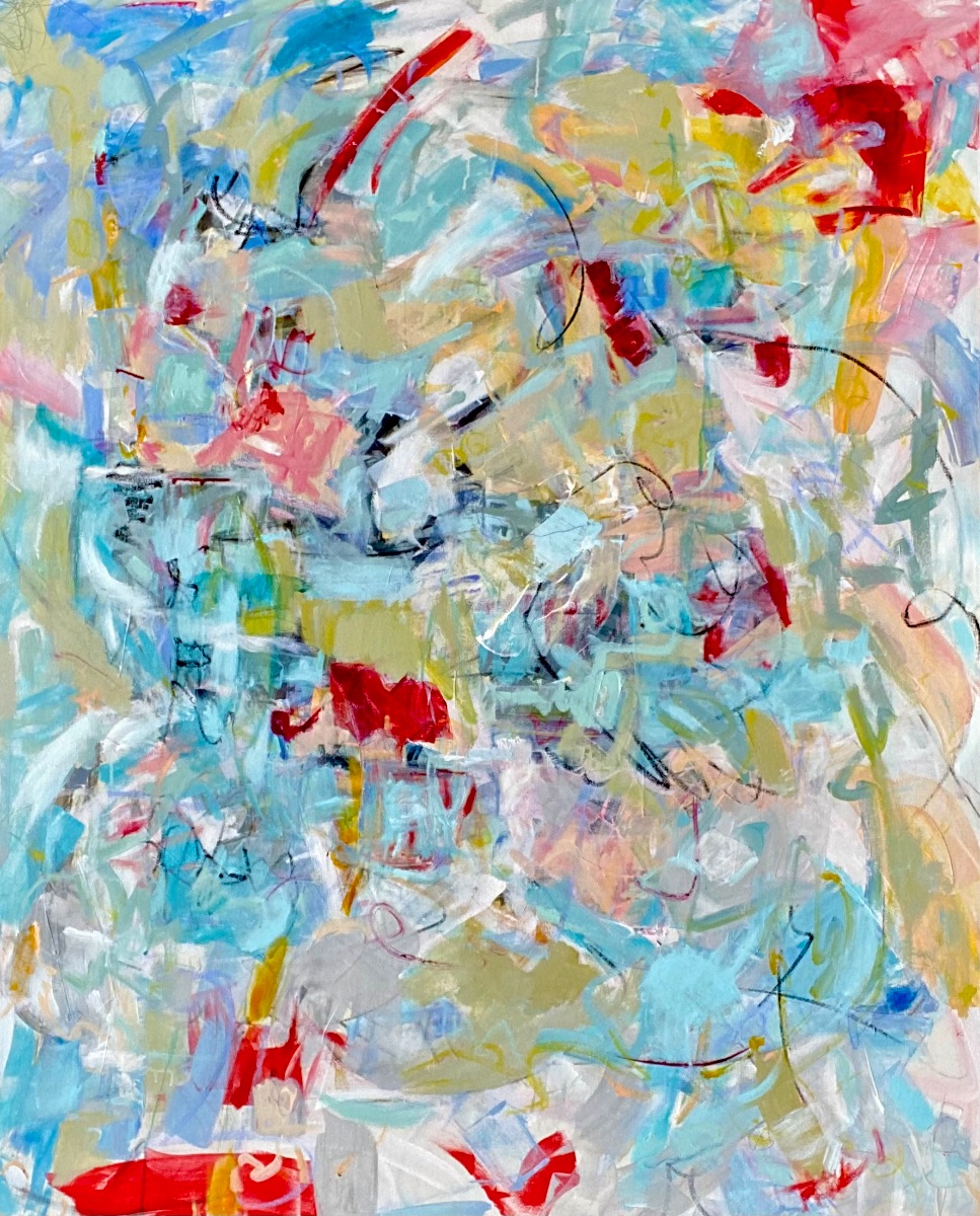 This painting is 60x48 inches width is 1.5 inches. This painting is made with acrylic paint, oil pastels, charcoal, acrylic markers and collage. The feel of this painting is enchanting.