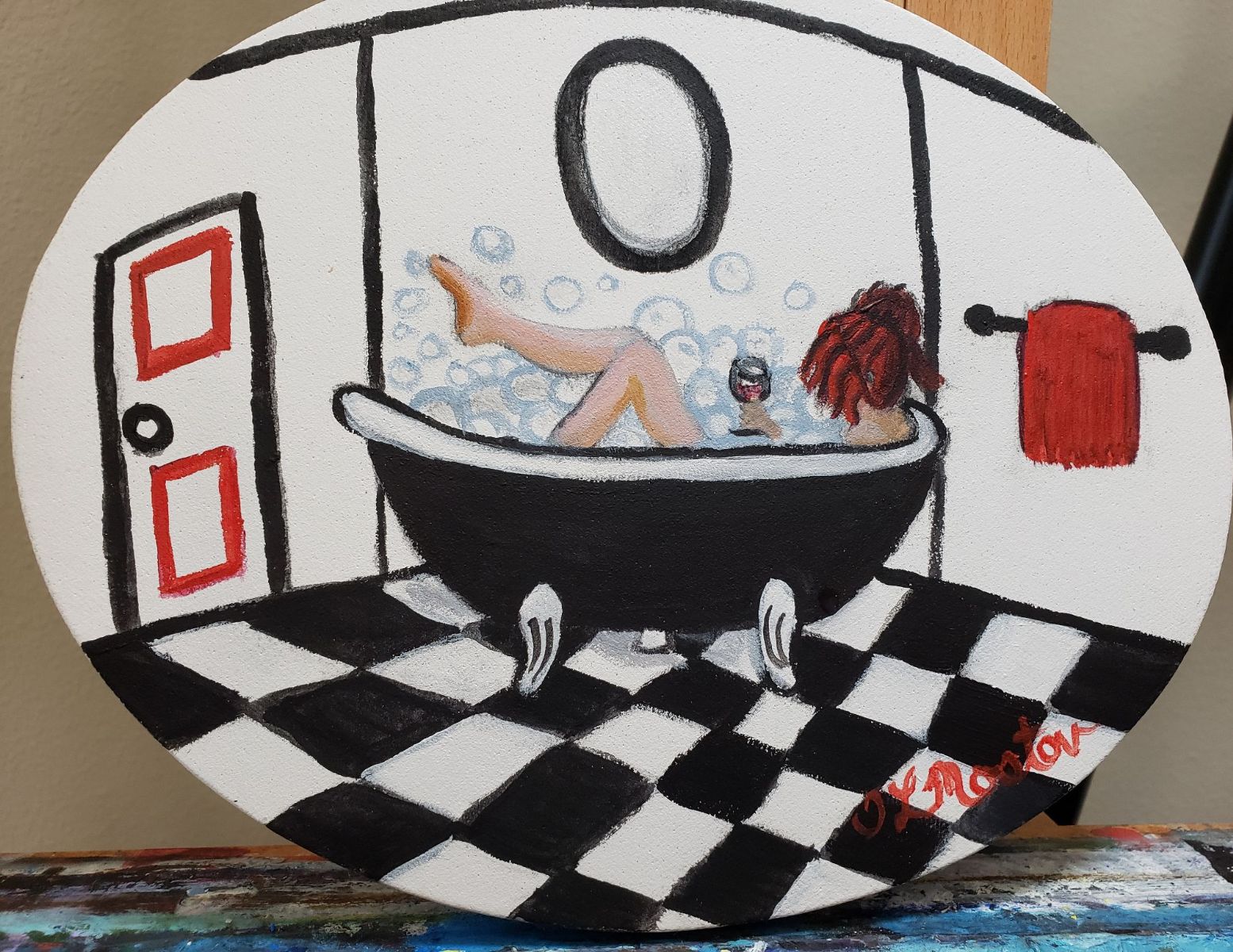 This fun piece was just that- a fun piece to go in your master bath or powder room!