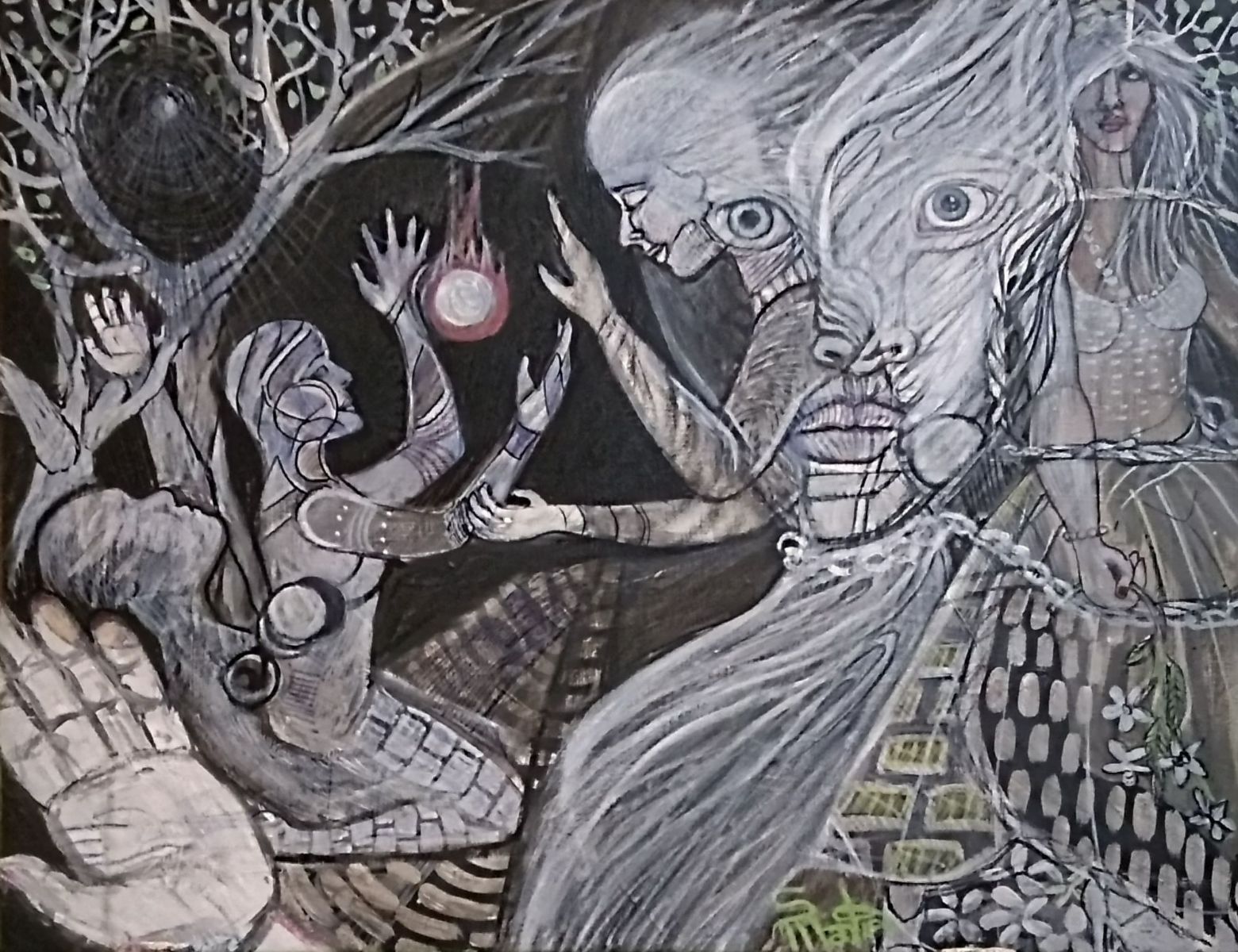 This work explores lost love thru death and the return from death being granted by an angel. In my inner spiritual life live the memories of those I have lost. And the knowledge that I will hold them again.