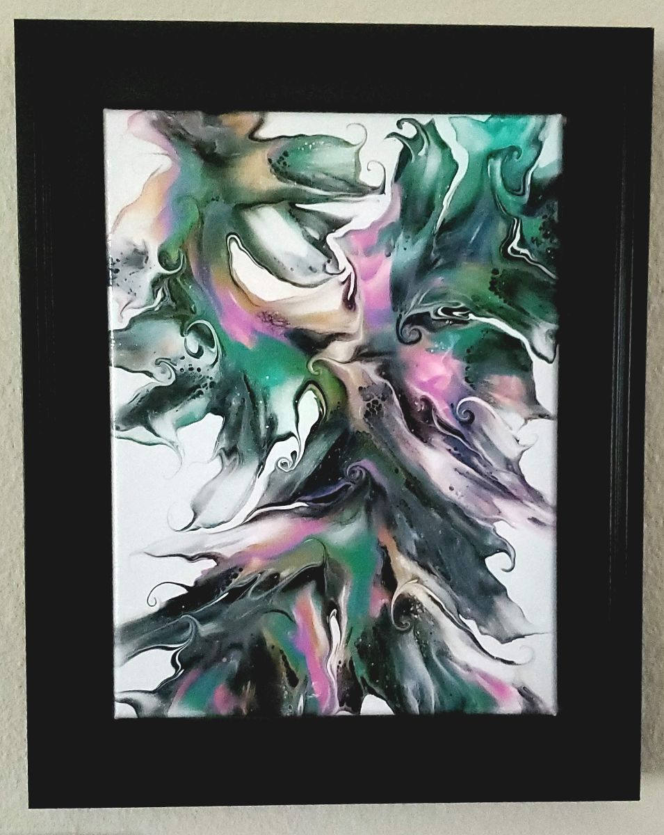 9x12" Acrylic on Canvas (framed)This is the result of being inspired by my husband's endless stories of dragons and mythical folklore and of the Mardi Gras season.