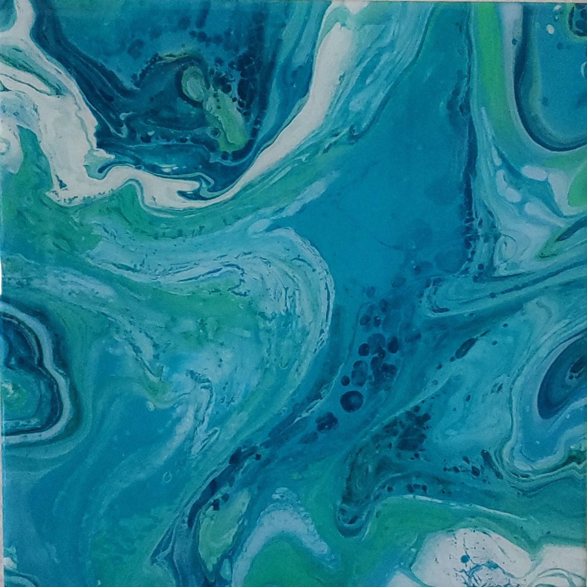 12x12" Acrylic with Resin on CanvasThis was inspired by a scarf that my son and I painted several years ago. I wanted to bring the scarf to life in a new way.