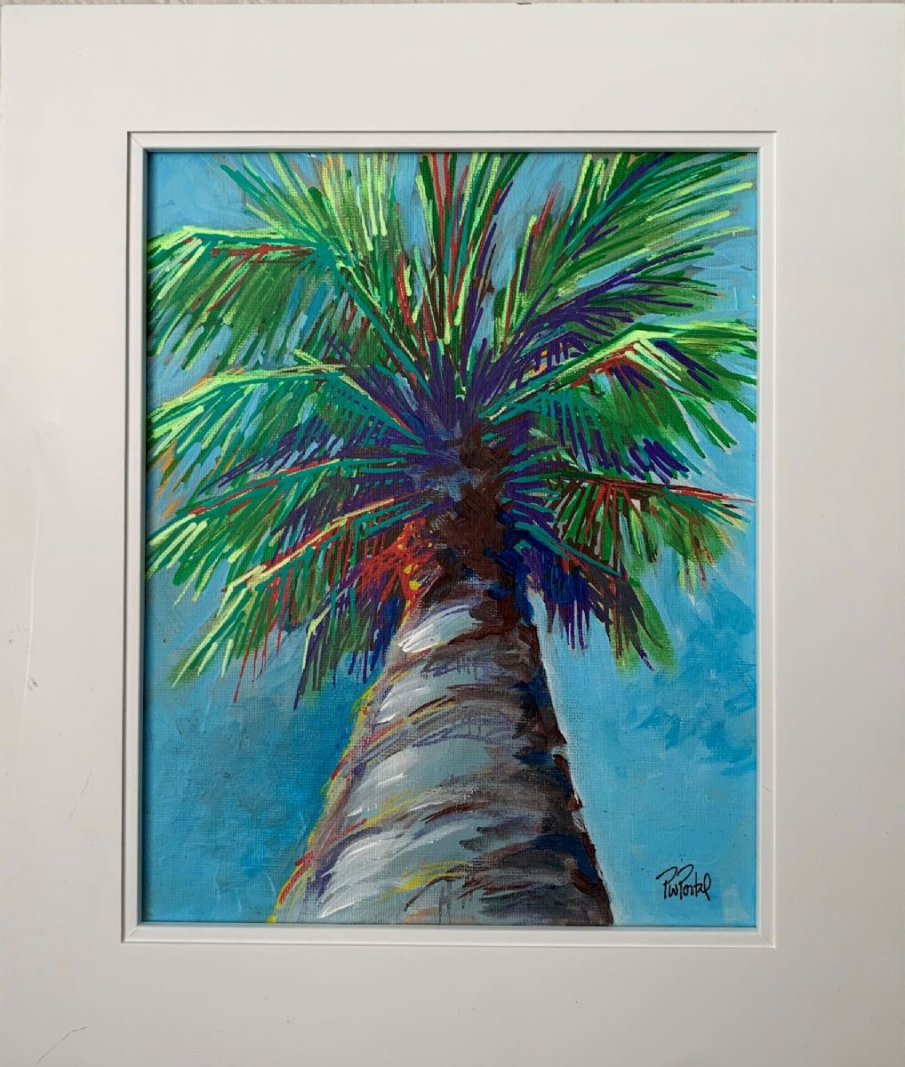 This DreamWorld work imagines the viewer awaking from a nap under the palm to experience the interplay of light and color in the fronds. The brushwork is highlighted with acrylic paint markers.