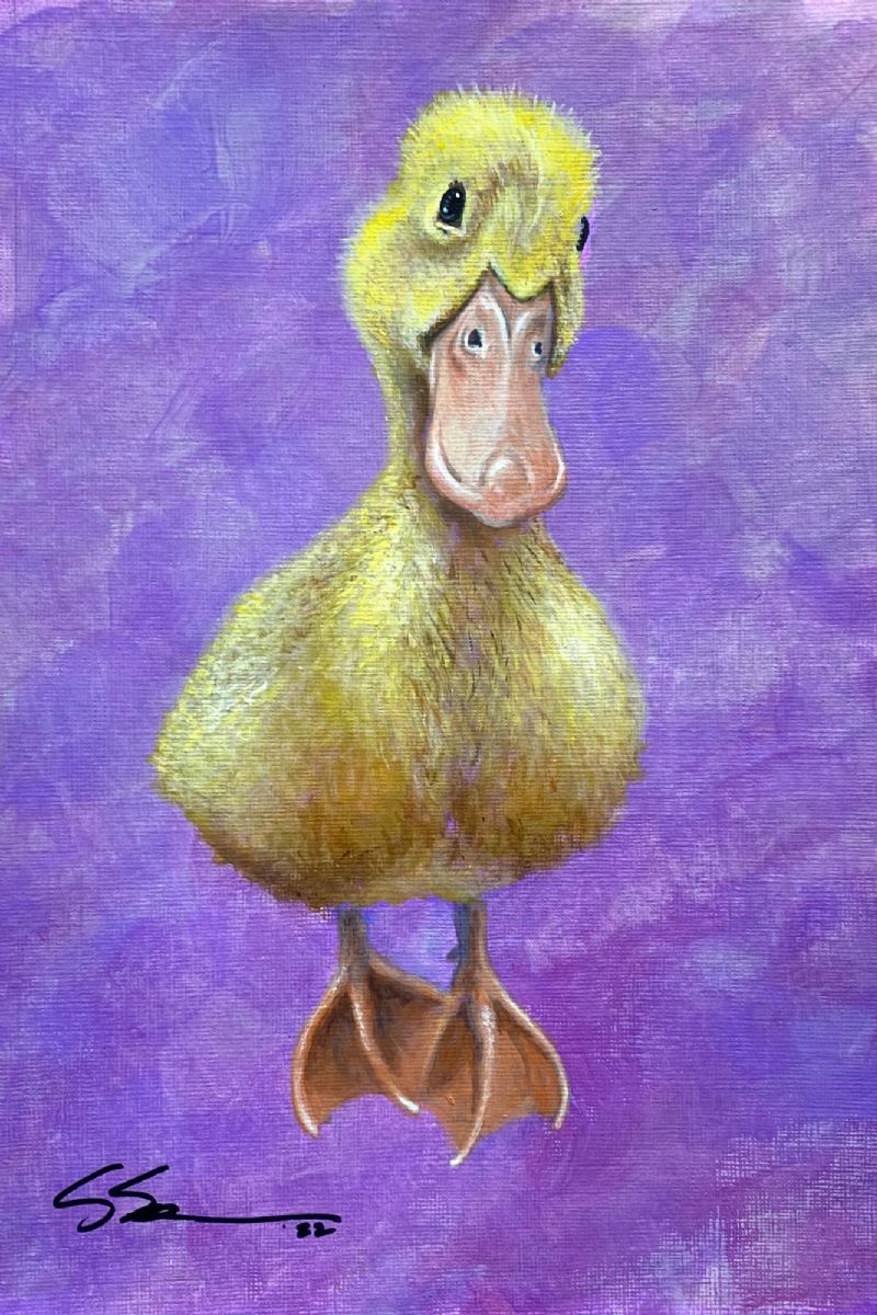 Portrait of a friends pet duck which he hatched from an egg and raised. A challenge to capture the mostly yellow fluffiness of this little character.