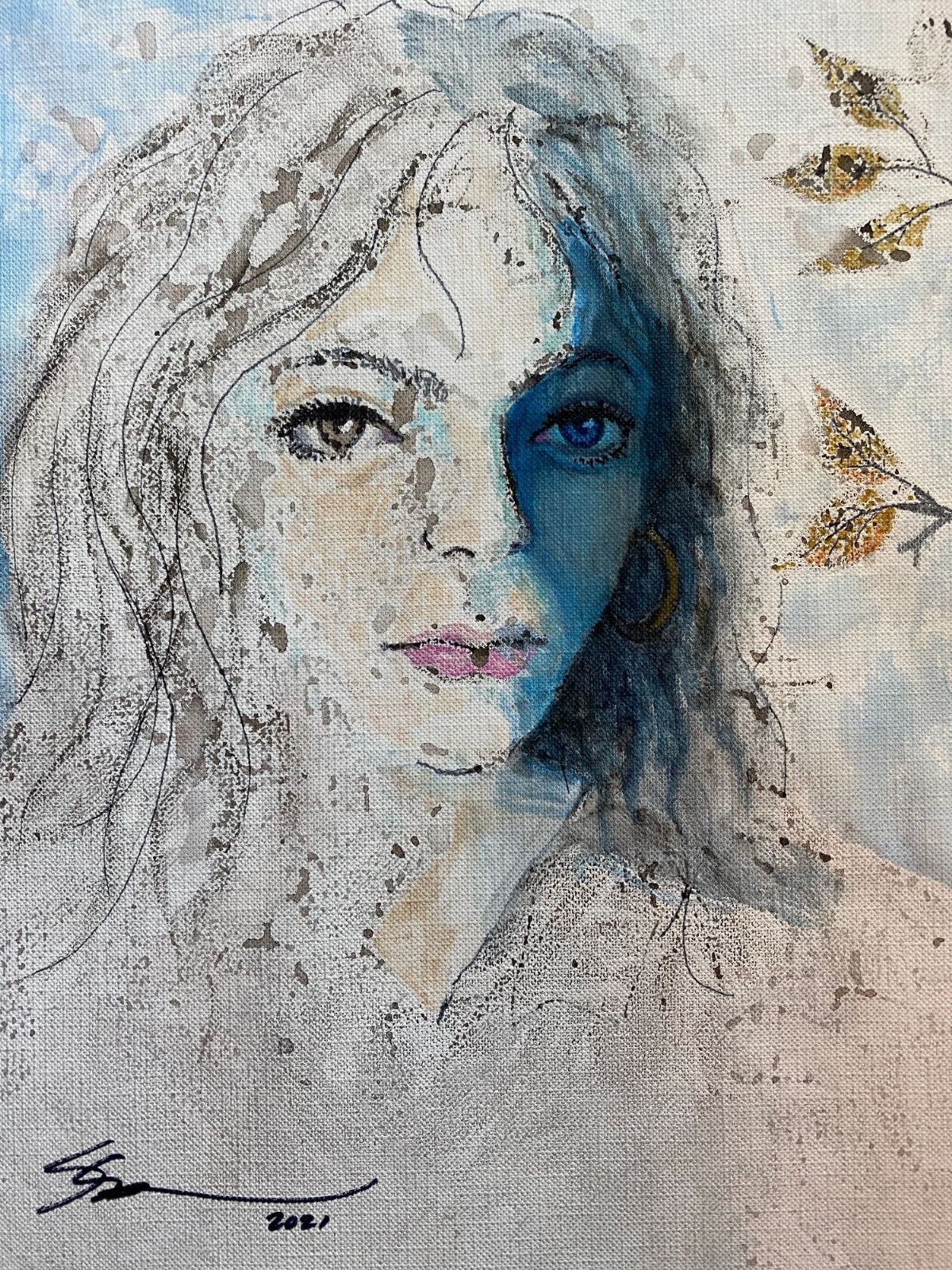 This work started out as an experiment with a new type of paper that I thought might work for watercolor. To my surprise the paper repelled the medium and I got this blotchy texture but still a captivating visual. From there it just sort of evolved. Added some acrylic which the paper took fine and created a smooth part of the picture. Love the leaves on the right as they feel like late fall foliage where the vivid colors are totally gone and we're left with forms becoming skeletons of their former selves before they recycle back onto the earth.