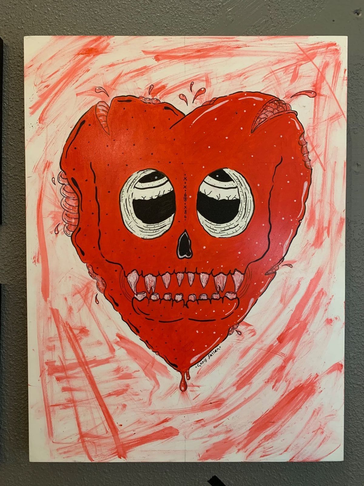 Love Death is a fun and devious painting about the bitter sweet feelings and emotions of love. Love can be cute and scary all at the same time. Choose your own adventure and take the leap.