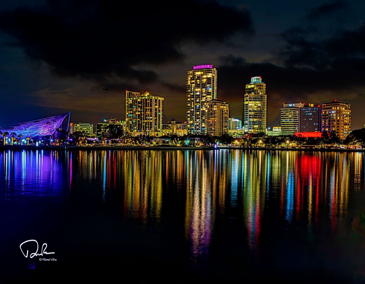 This is downtown St Petersburg at night. I love St Pete and it's skyline. It was taken from the top of the Pier at midnight. I thought the lighted buildings and reflections in the harbor were beautiful. Camera: Nikon D750 Lens: Nikon 80-400 mm Shot at 80mm ISO: 100 15 sec exposure