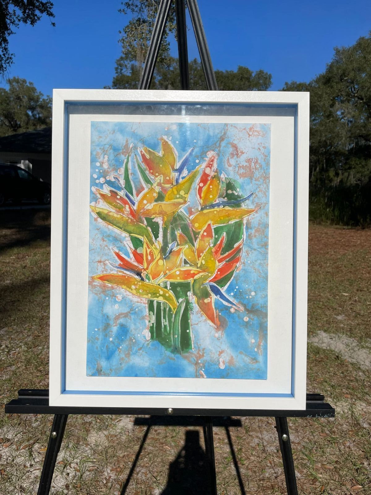 Limited Edition | watercolor batik on rice paper floating, 16" x 20" x 2"