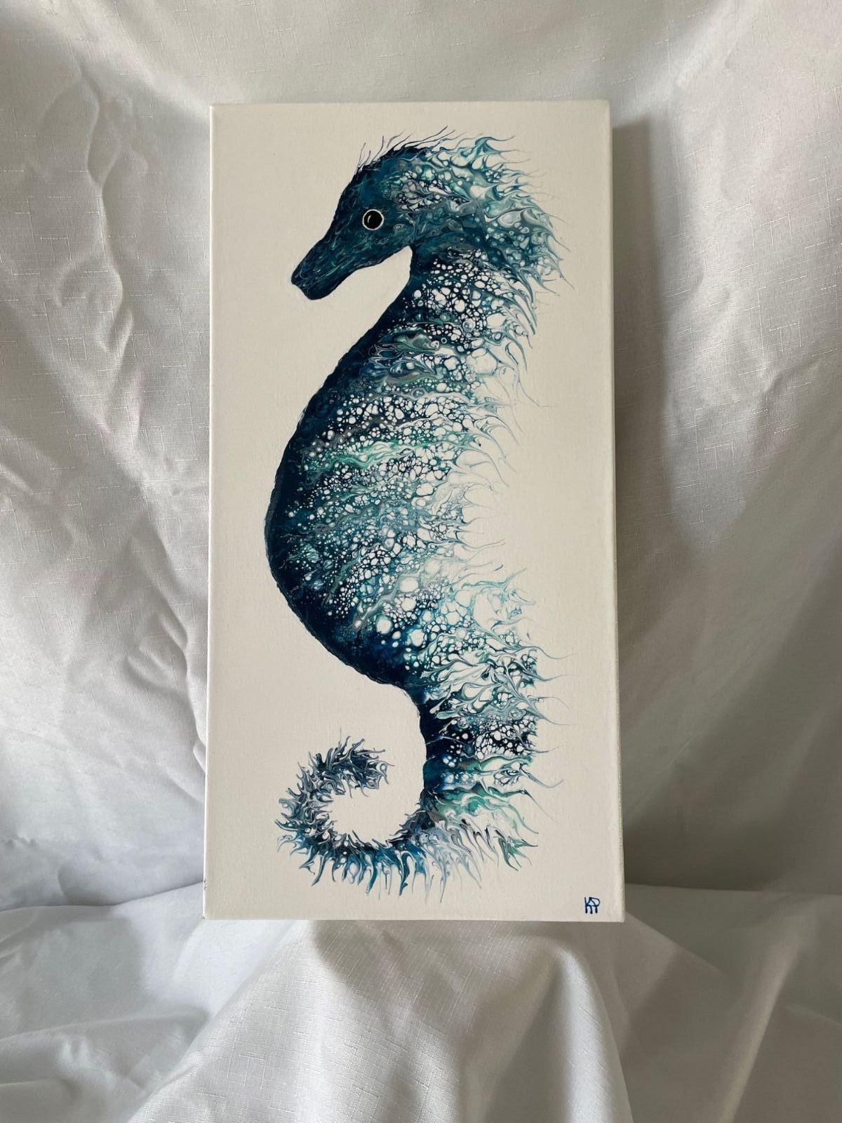 A seahorse is one of those creatures that is rarely seen but recognized by everyone. They are whimsical in their own right . I hope you enjoy my abstract version of this magical sea creature and "Giddy-Up" finds a special place in your home.