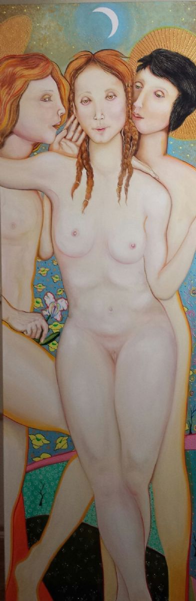 Two angels seducing a young woman. Genesis 6:2.From the private collection of Lisa Barika