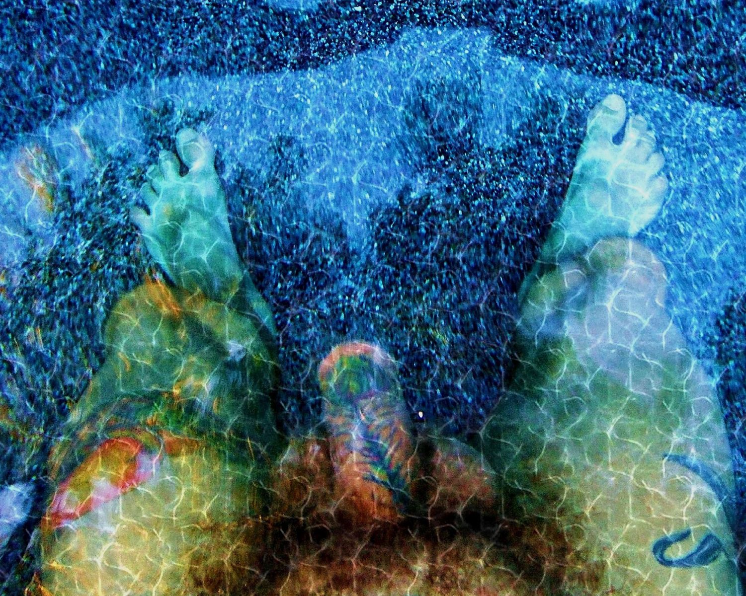 Surreal images can be found in the most pedestrian or unexpected places. this photo was shot while cooling off in the pool after a shoot of tropical flowers on a hot afternoon. All I had to do to find this image was to look down at my feet.