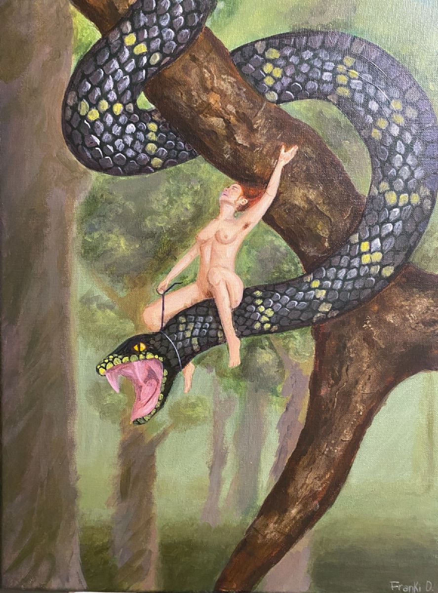 Is this woman free just because she is given the choice to ride the snake? The snake that is covered in scales that will burn her skin to the bone and is ten times her size? Scales is about power dynamics that still exist in society despite them now being more covert. We may benefit from the system but will always have dues to pay in the end.