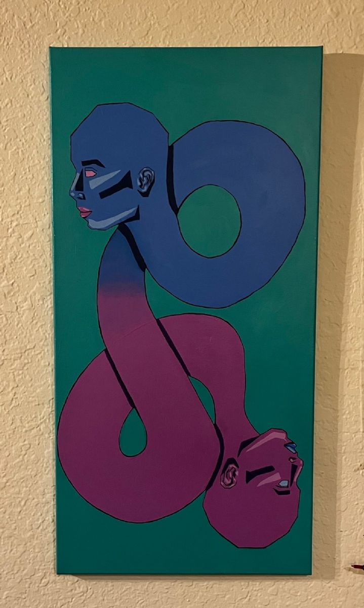 Two Faced is a bold piece that was created to highlight the double personality that many people subconsciously create when dealing with mental health issues. As a take on "masking" emotions, this piece can be displayed in any orientation and the aim is for the viewer to create their own meaning behind the piece and what the connected faces represent.