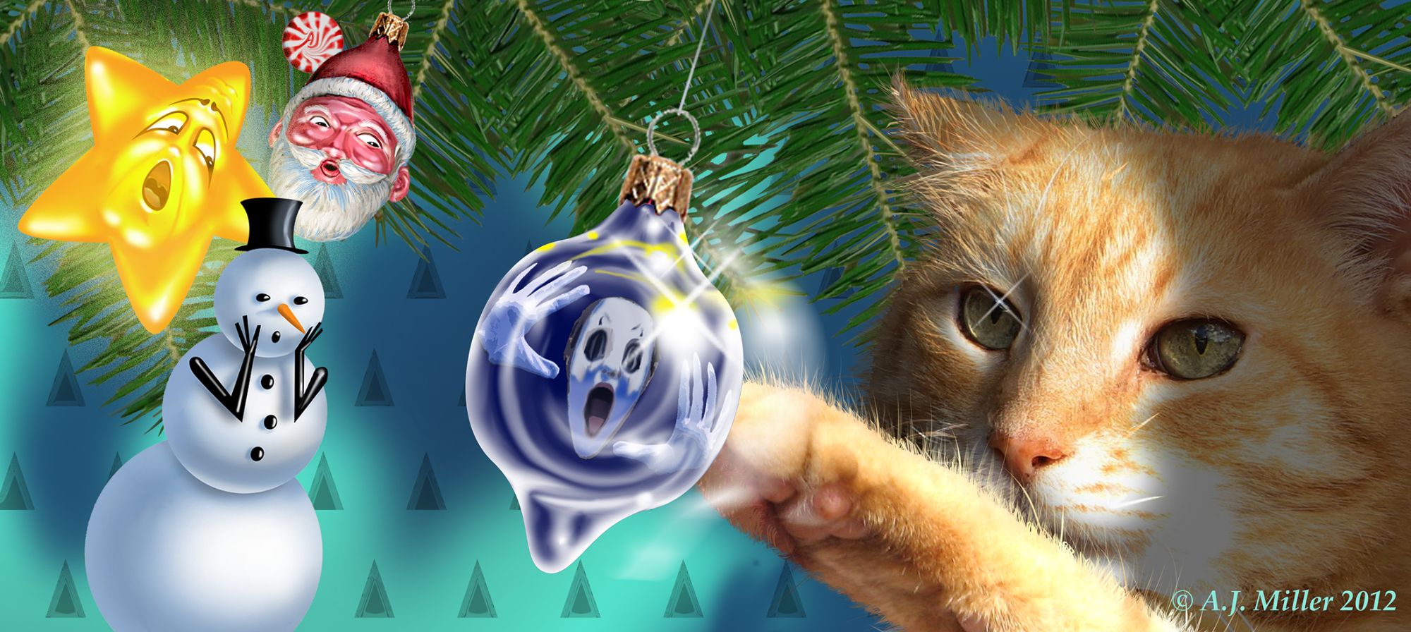 Interactive Cat | Digital Art on Photo Paper Framed, 20" x 16" x 1"