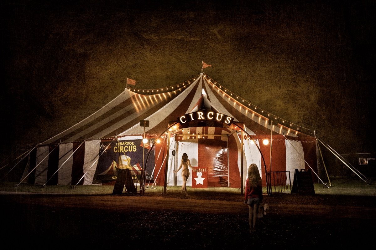 As children we often dream of running away to join the circus, both figuratively and in reality. Driving home one night at midnight, I came upon this mirage. Yes, parts of it were there, and parts were visions in my childhood. Dare to dream, for without dreams there is no reality.