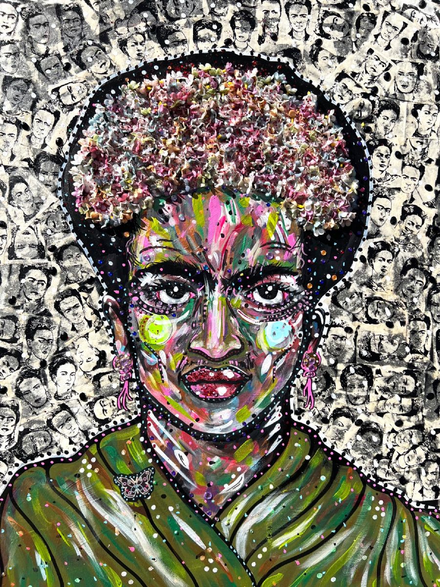 Limited Edition | Stretched canvas, acrylics, glitter & gems, lokta , 30" x 40" x 1"