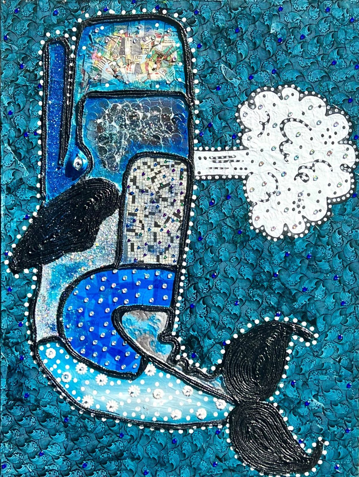 Limited Edition | Canvas, lokta paper, yarn, acrylics, gems, newspap, 40" x 30" x 1"