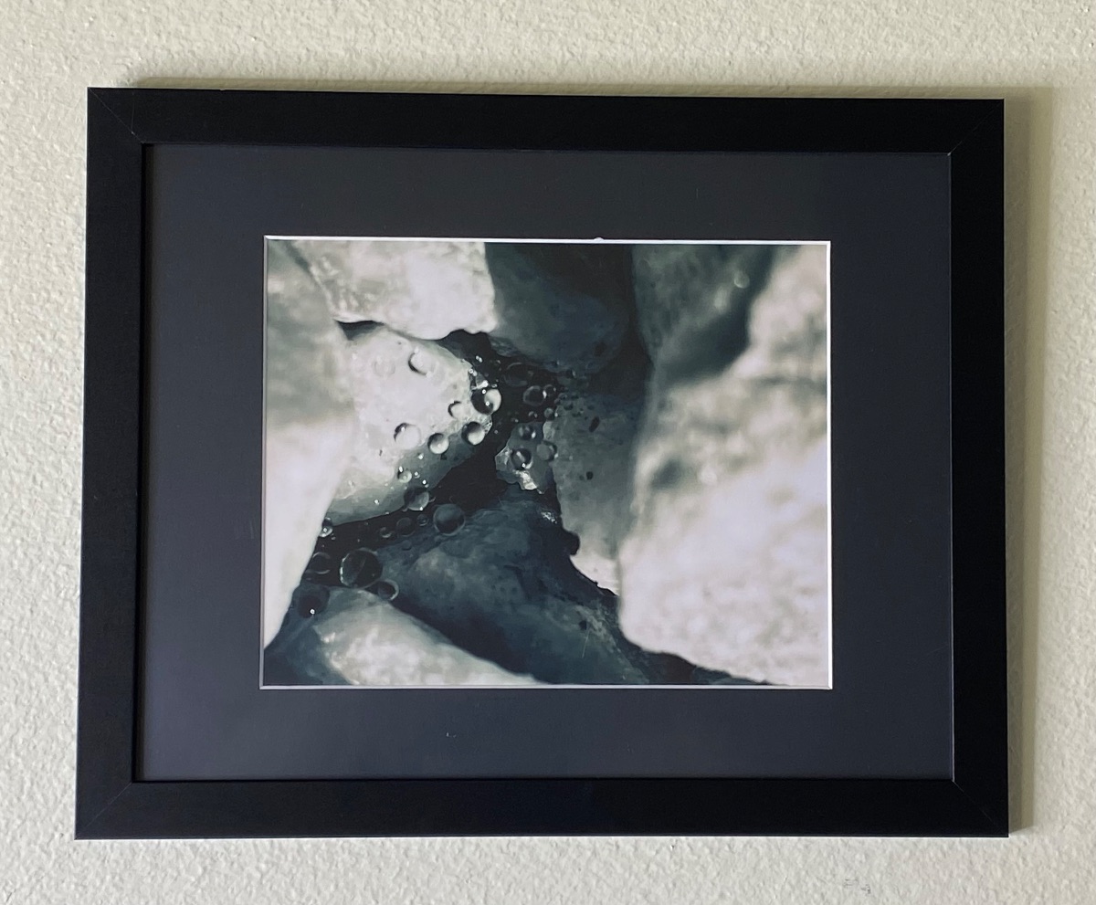 Beneath the rocks, water droplets are finding their way down. As if they are being transported.