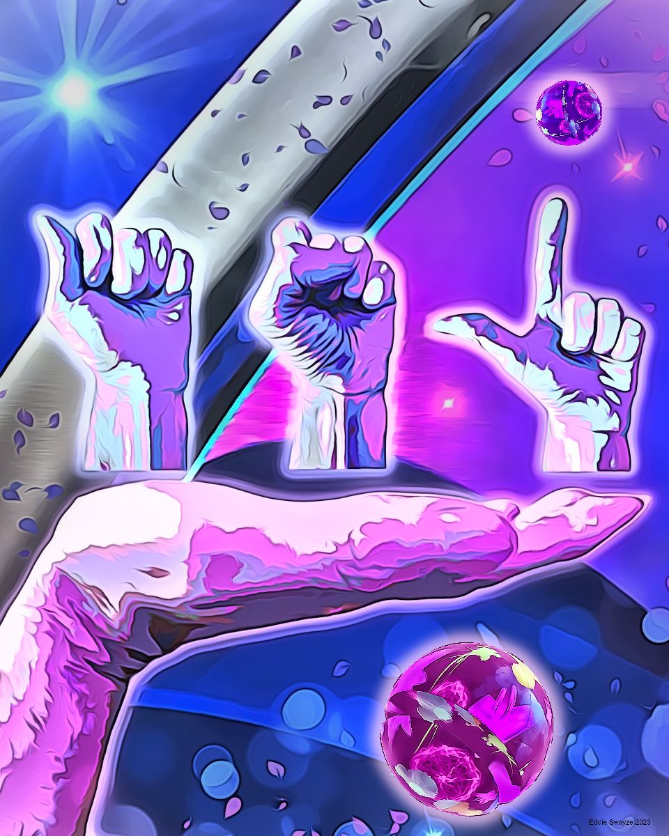 My hands in posterized effect and cartoon effect holding hands that say, "A.S.L." in fingerspelling with effects.