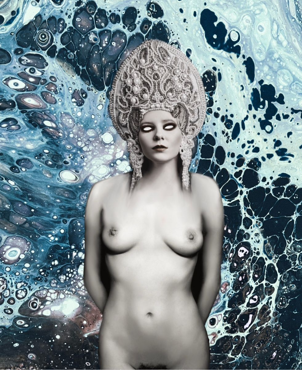 Limited Edition | Digital, pearls, and resin on canvas, 20" x 30" x 2"