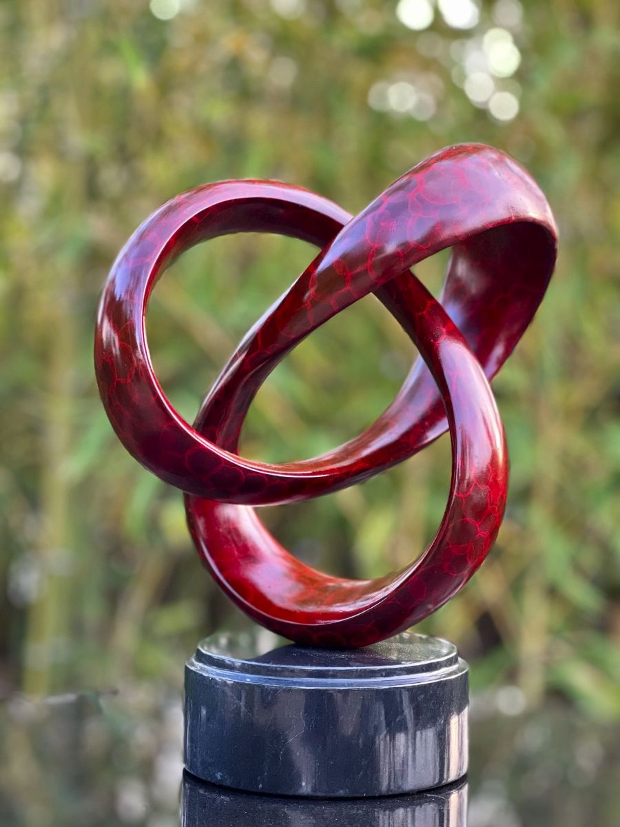 This bronze sculpture is designed in the classic T Barny trefoil form. The trefoil knot is chiral, meaning that it can be distinguished from its own mirror image. This results in two variants, right-handed and left-handed trefoils. My bronzes are molded from sculptures I have carved from stone; Catena was originally carved in Italian Alabaster.