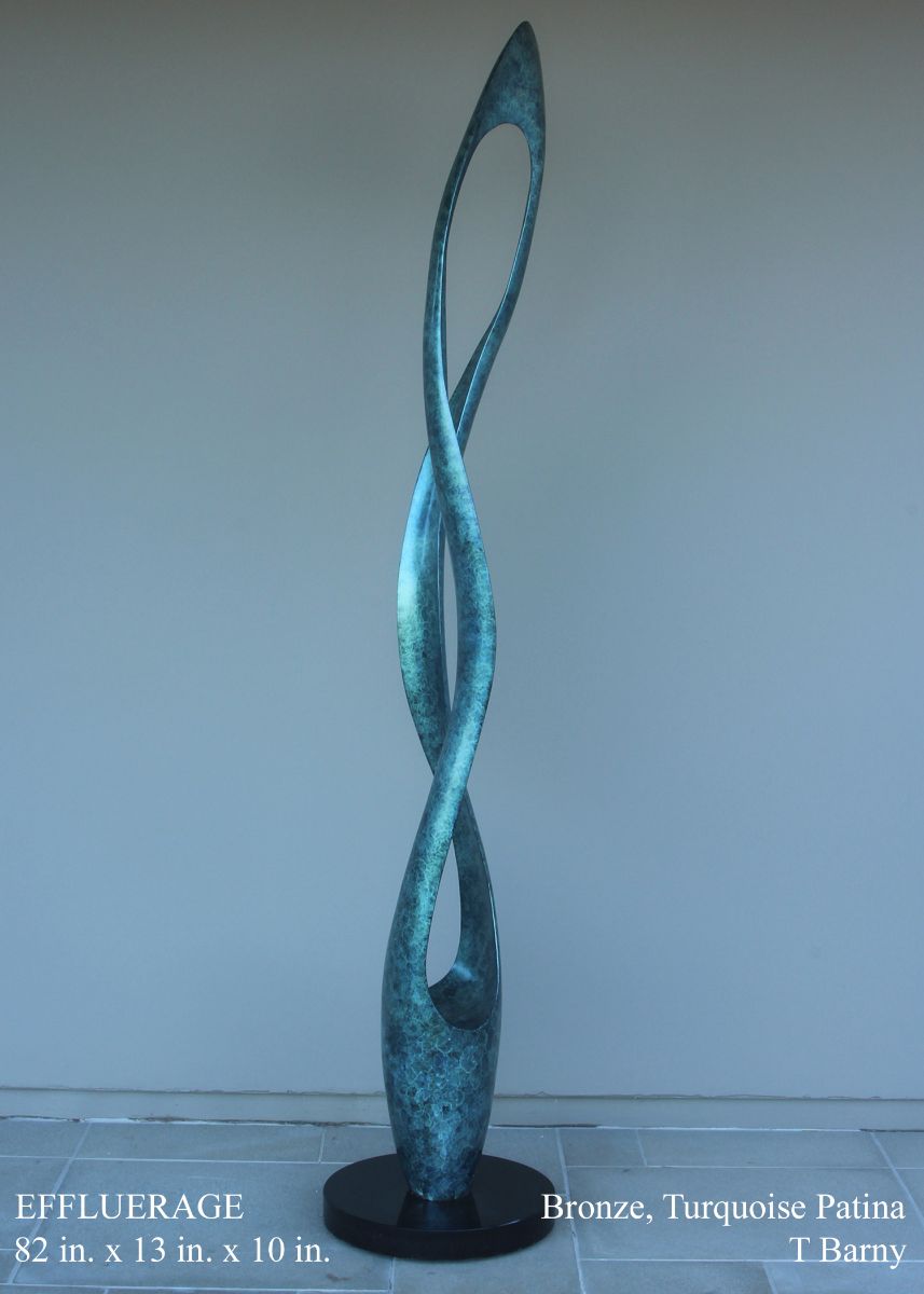 In massage, the word Effleurage refers to a long, flowing stroke made by the masseuse. Effleurage is my only bronze that was not originally carved in stone. I carved the original from a California Walnut tree, then took a mold from it, cast the bronze, and finished it with a patina. A patina is the controlled oxidation on the surface of a bronze in a direction of color.