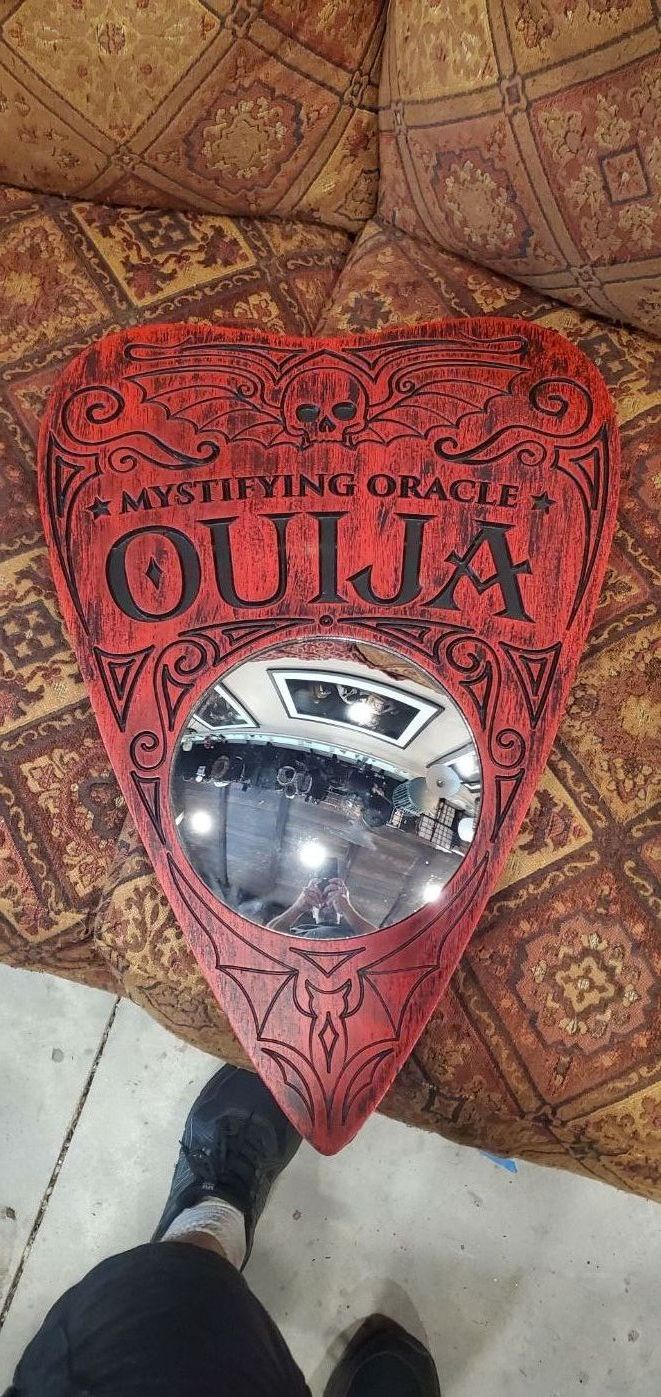 inspired by the classic Ouija planchette, this mirror calls you in to journey to the other side and see what fate awaits you! Are you brave enough to ask this mirror, mirror, on the wall your deepest, darkest, questions?