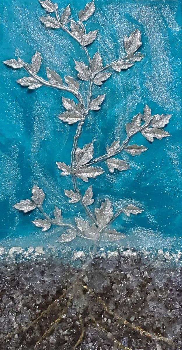 Many of us remember Charlie Brown and the frail, drooping tree he found in "A Charlie Brown Christmas". But what if that tree had been made of silvers and sparkled? What if that tree shined like Charlie Brown's loving spirit? What if that tree represented the sparkle we don't see in ourselves? This painting is a reminder that even if at first glance we seem weak and frail, underneath we are strong and can still shine.