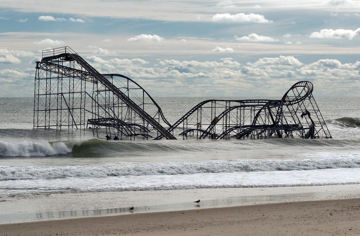 The Wild Mouse roller coaster stands in the ocean three days after Hurricane Sandy in Seaside Heights, N.J.