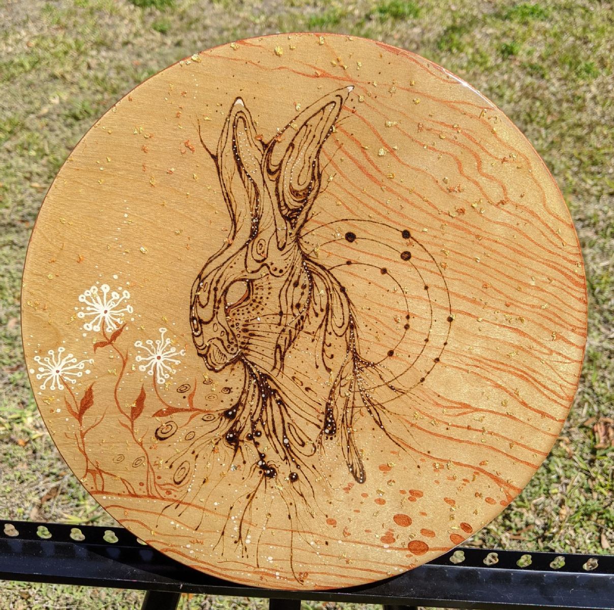 Limited Edition | Wood Burning, Resin, Acrylic Paint on Wood Panel, 12" x 12" x 1"