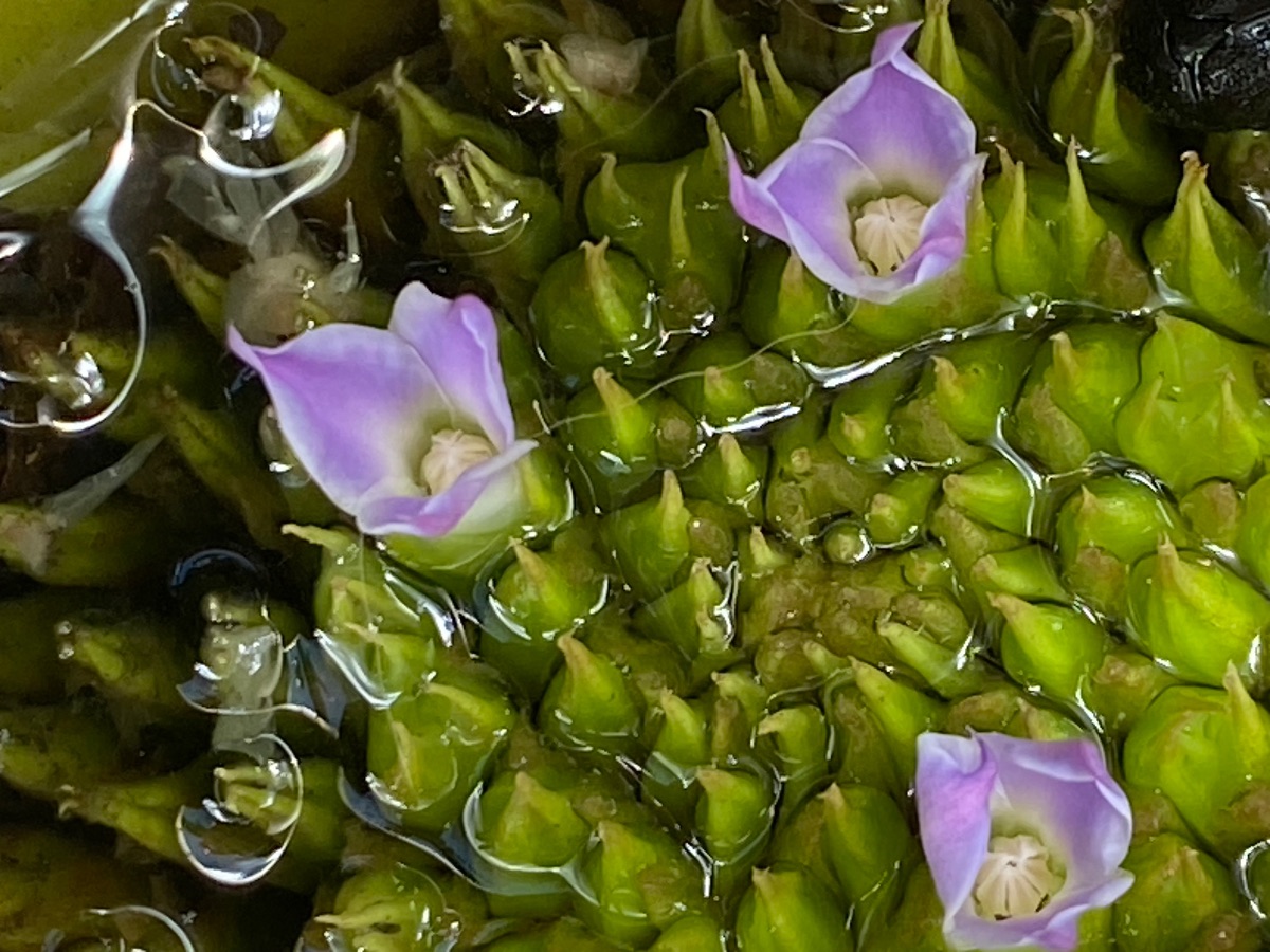 The water fills the center of the plant. The sunshine comes in and the buds bloom.