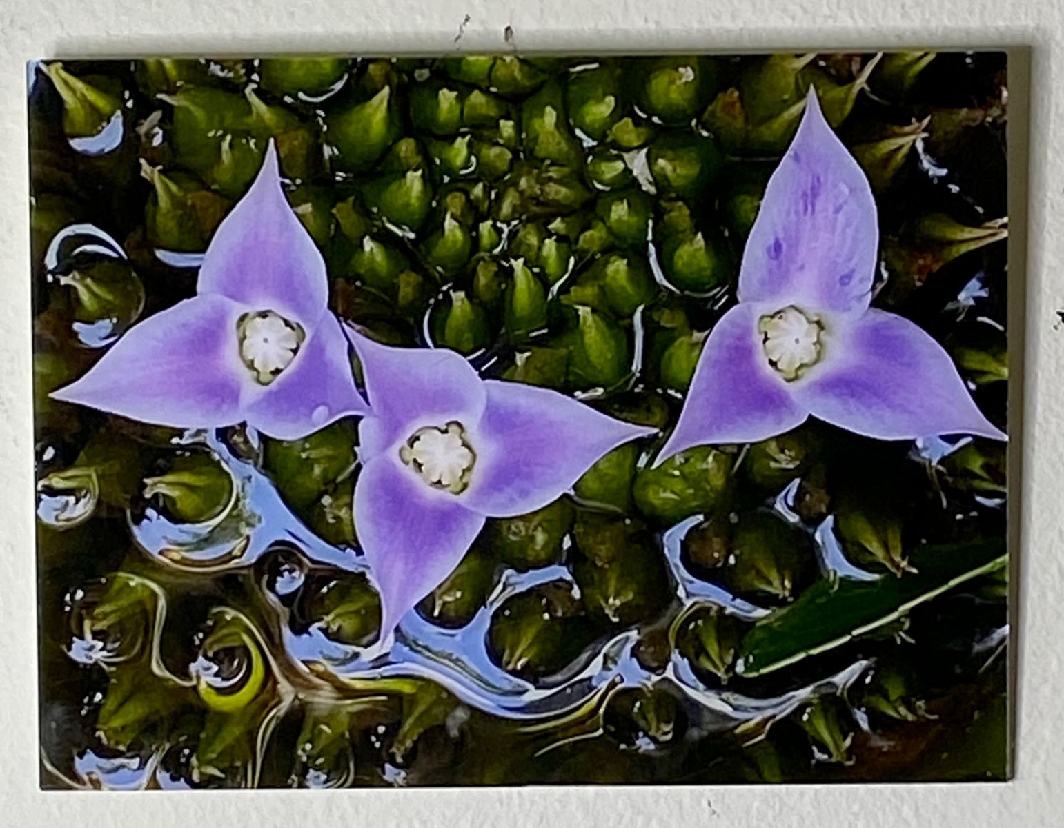 It's the little things in life that makes me happy! That's my life lesson! Years ago my neighbor gave me some Bromeliad plants. I had never looked inside the center of them, until recently. I'm so glad I did or else I would've missed these beautiful tiny, purple flowers! They not only captivate me but their beauty brings me a lot of happiness! Photo on acrylic