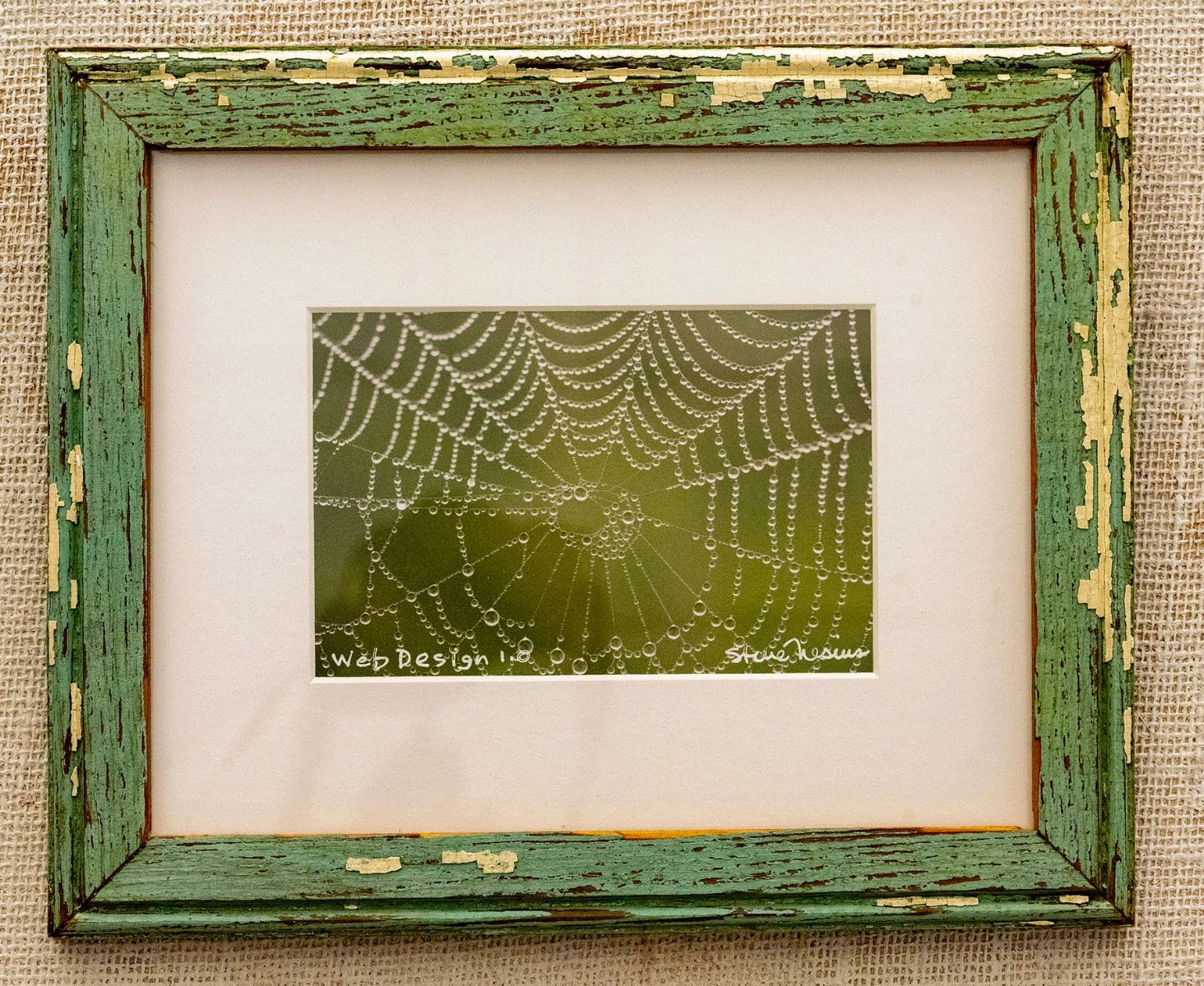 While rising with the sun to capture morning magic at Myakka River State Park, mist hung thick in the air. There beneath the handrail, a cascade of spider webs dangled like glistening jewelry. Each thread adorned with dewdrops that sparkled like diamonds. Custom built frame made with salvaged bead board from the laundry room ceiling of the Belleview Biltmore Hotel