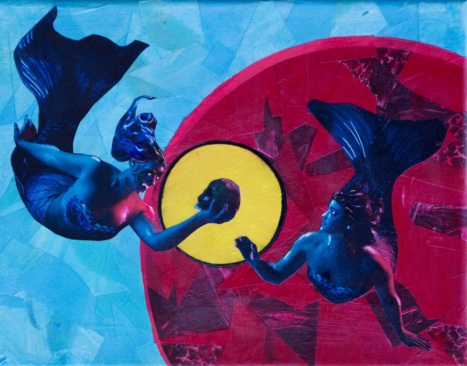 When Lakeland photographer Scott Audette told me he was creating a series of underwater photographs featuring zombie mermaids and asked if I wanted to create something using one of his photos, of course I said yes! This piece combines mermaids from two different photos, but I felt like they needed to interact. The skull is an obvious symbol of death, with two female mermaids contemplating the destruction they've caused.