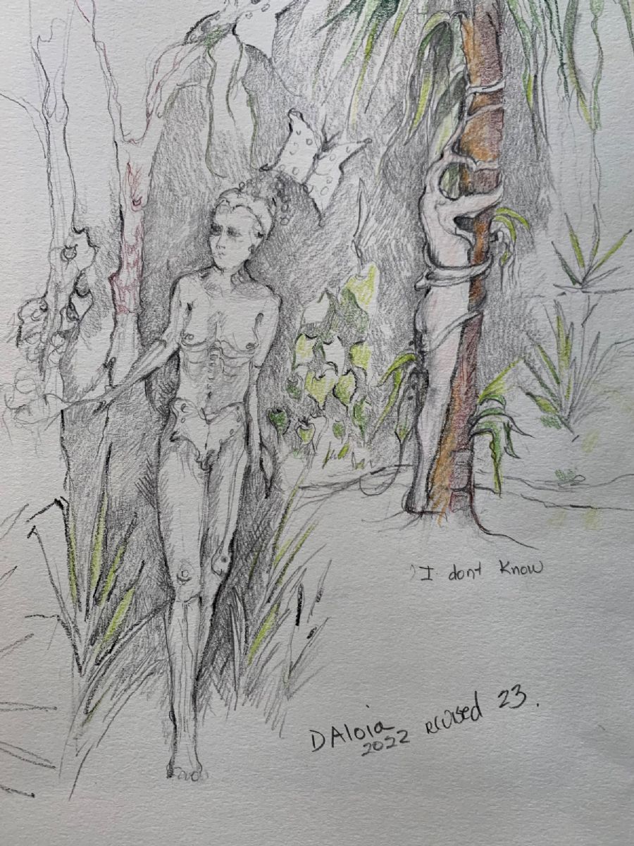 I see figures in nature wherever I go, the vines and roots of trees resemble figures hugging. It reminds me of how we as humans have a symbiotic relationship to all nature.