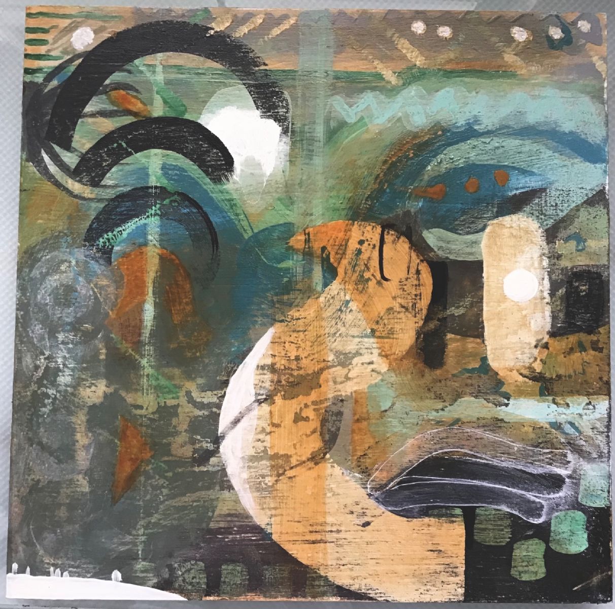 I am interested in shape and color primarily. I allow forms and moods to suggest themselves and then I continue in a direction of interest - subtracting, adding, covering over, revealing, enhancing.