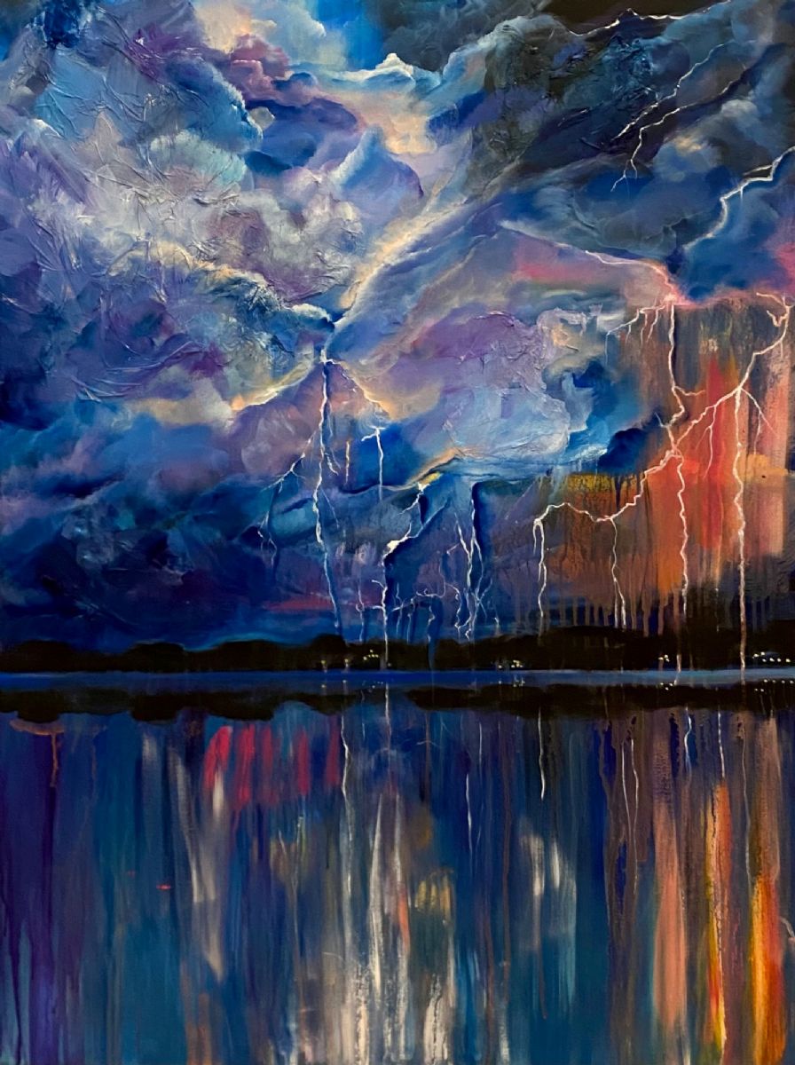 ANGEL WINGS...a creation that was developed by emotion. Working with the paint and an impressionistic theme, the Angel wings "appeared"....as an artist I developed and worked with that surprise, a very strong and deep story began to evolve. My hope is that the viewer will feel a connection to the mystery of the piece.