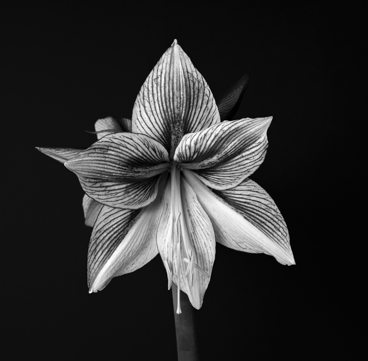 This particular amaryllis lily is known as "Stargazer" due to its unique pattern and texture. While this flower is beautiful in its full color, I wanted to use a good contrasting black and white film to highlight the flowers structure, depth, and texture. With black and white photography, these things are what draw you to the subject since it is lacking color, these things must be emphasized.