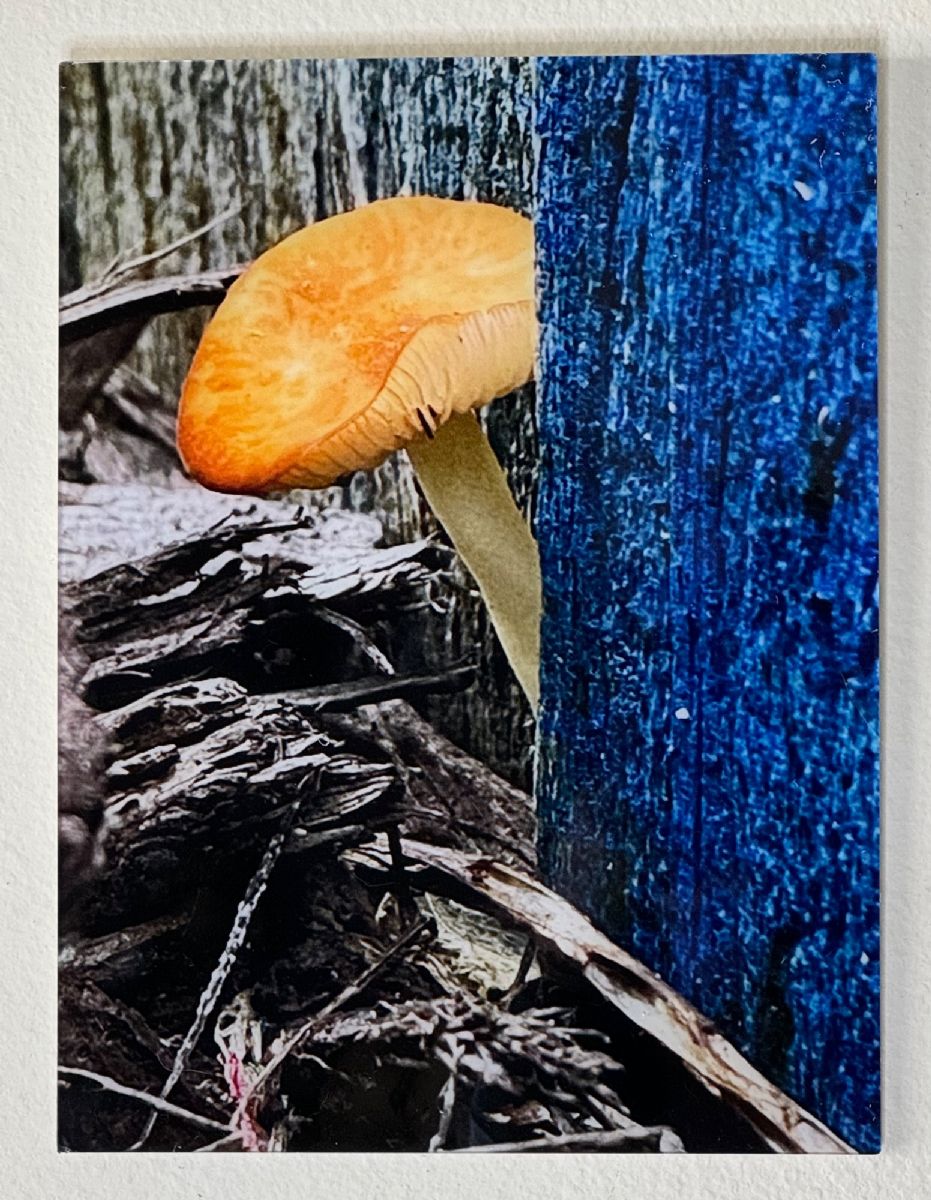 As life goes on, I appreciate everything around me, especially nature. When I'm outside, I look all around to see what's happening. Whether if it's birds flying above or mushrooms growing nearby. One day when I was outside, I painted a broken, wooden door. When I looked down, I saw this beautiful mushroom peeking out from the door. It was as big as my thumbnail. The beauty of the mushroom and the blue of the door made this mall but mighty mushroom pop!