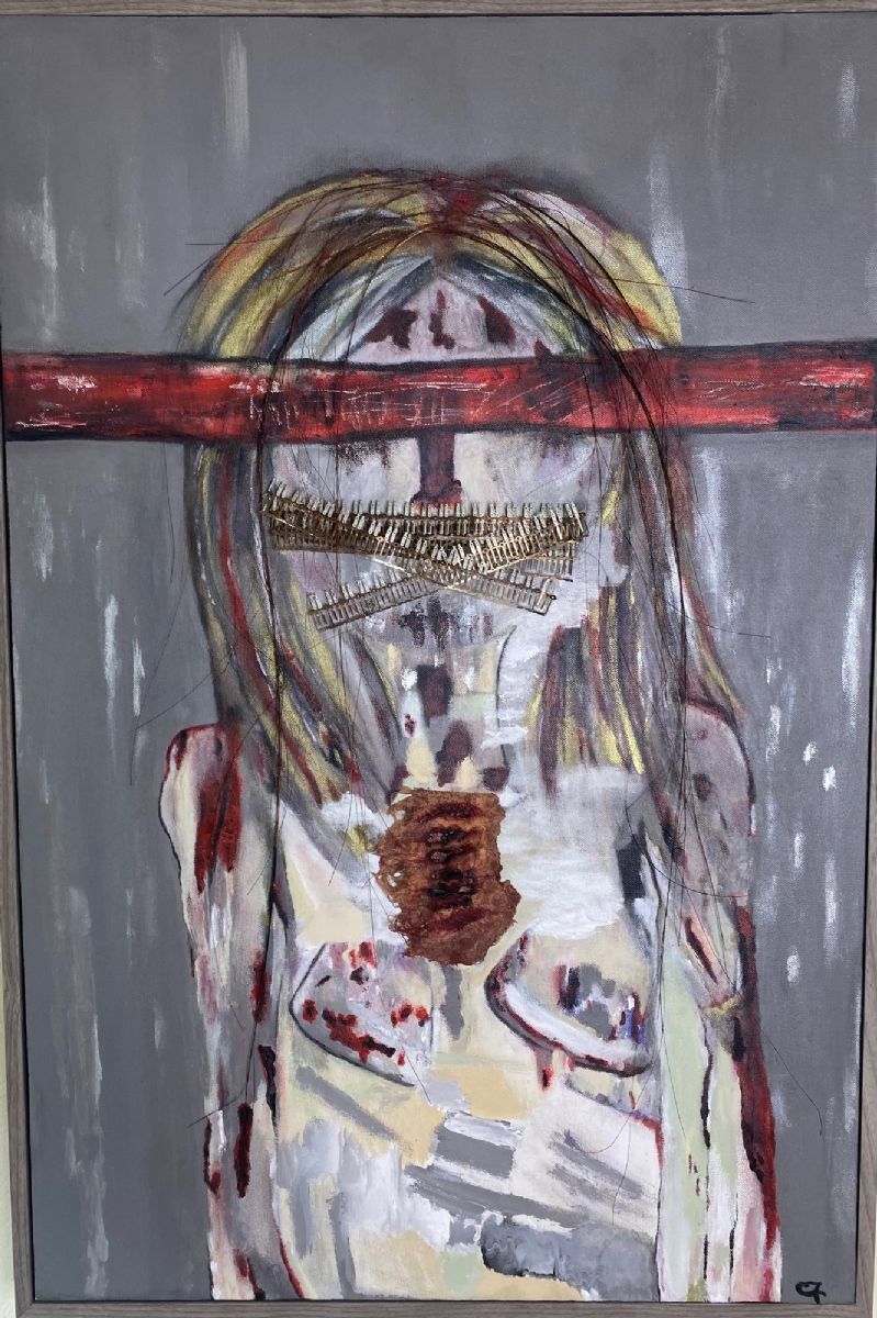 In the darkest hour that's when unusual things happen. The undead come alive. Their souls are filled with energy that is ready to unleash. Hence, the uprising. Framed. Acrylic paints with recycled materials.