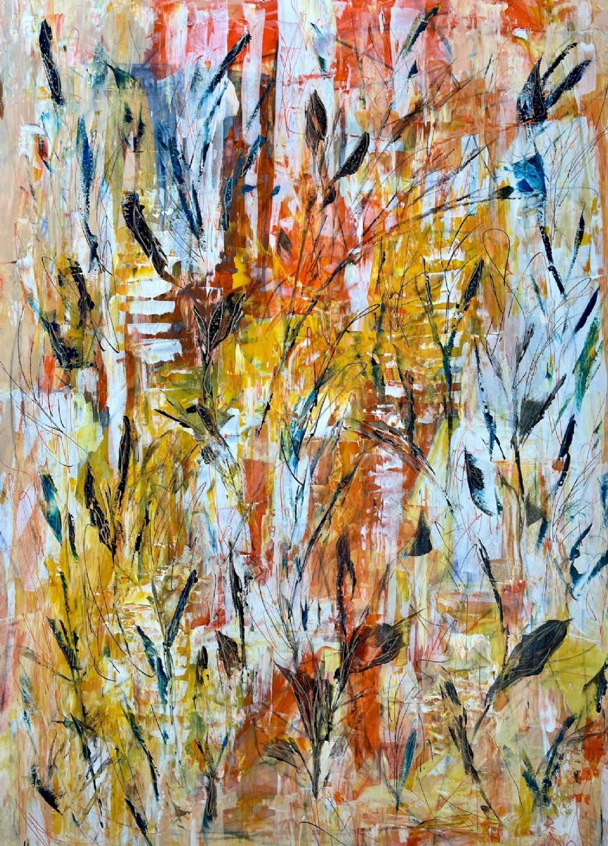 My paintings come from the soul and the heart. It starts with a mark and and continues from there. The colors and shapes seek your imagination. I start by making marks on the paper and then there are several layers of paint giving dimension to the work.