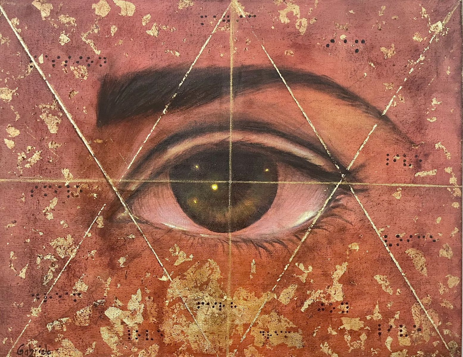 Visual Impairment Awareness is a compelling artwork designed to highlight the experiences and challenges of those with visual impairments. By incorporating braille into its composition, the piece transcends traditional visual art, creating an inclusive and multi-sensory experience. For sighted viewers, the presence of braille serves as an educational element, fostering curiosity and understanding about the ways in which visually impaired individuals navigate the world, advocating for a more inclusive and accessible society.